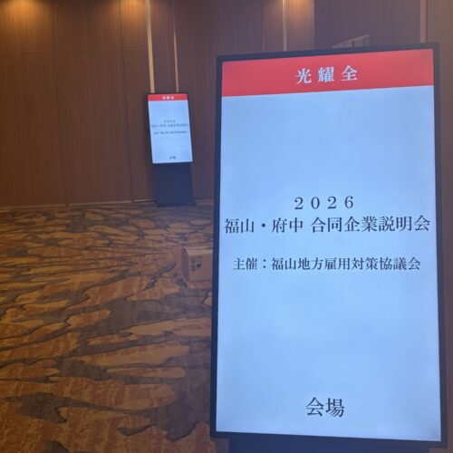 【採用イベント】福山・府中の合同企業説明会に参加しました! 採用・求人 NEW お知らせ 2026.03.10 「福山・府中 合同企業説明会」に参加してきました! キラキラとした笑顔で話を聞いてくれる学生さんたちにたくさんお会いでき、パワーをいただいた一日でした。 「もっと詳しく話を聞いてみたい」「社内の雰囲気を見てみたい」という方は、ぜひお気軽にご連絡ください。皆様からのメッセージを心よりお待ちしております!